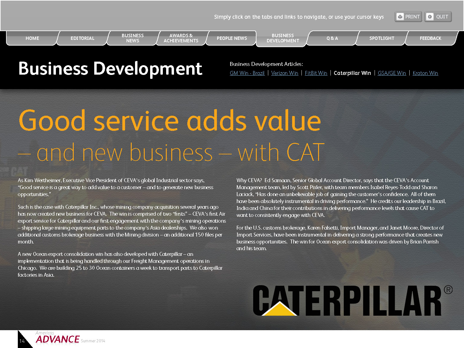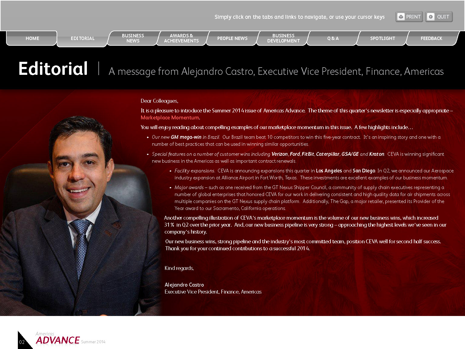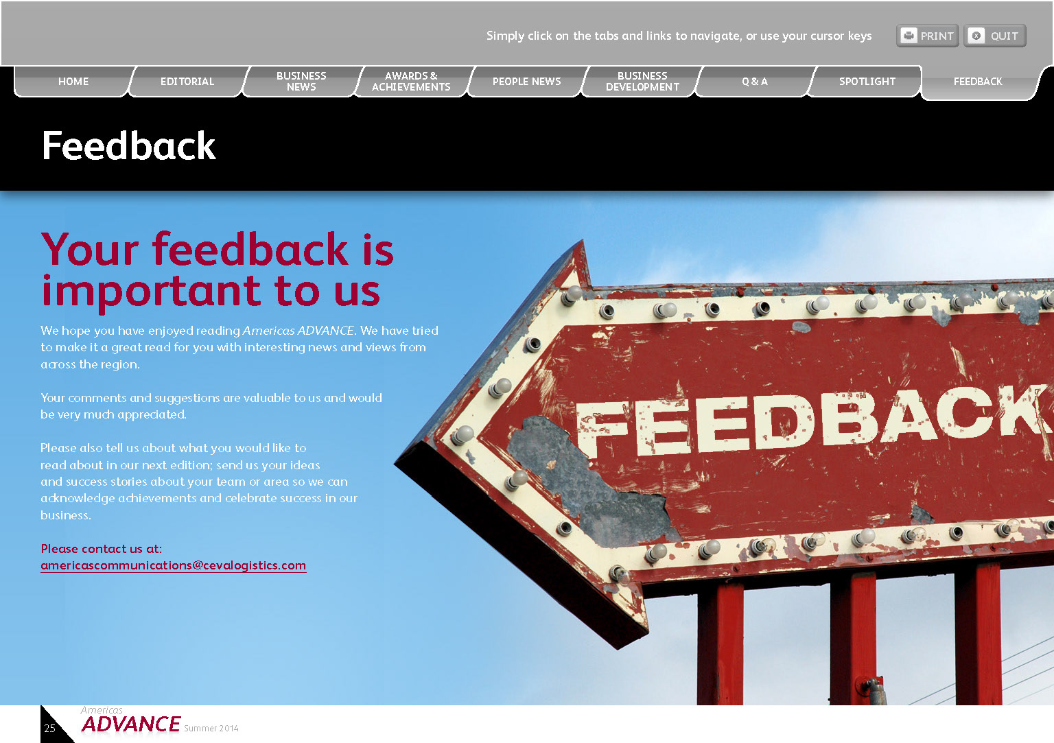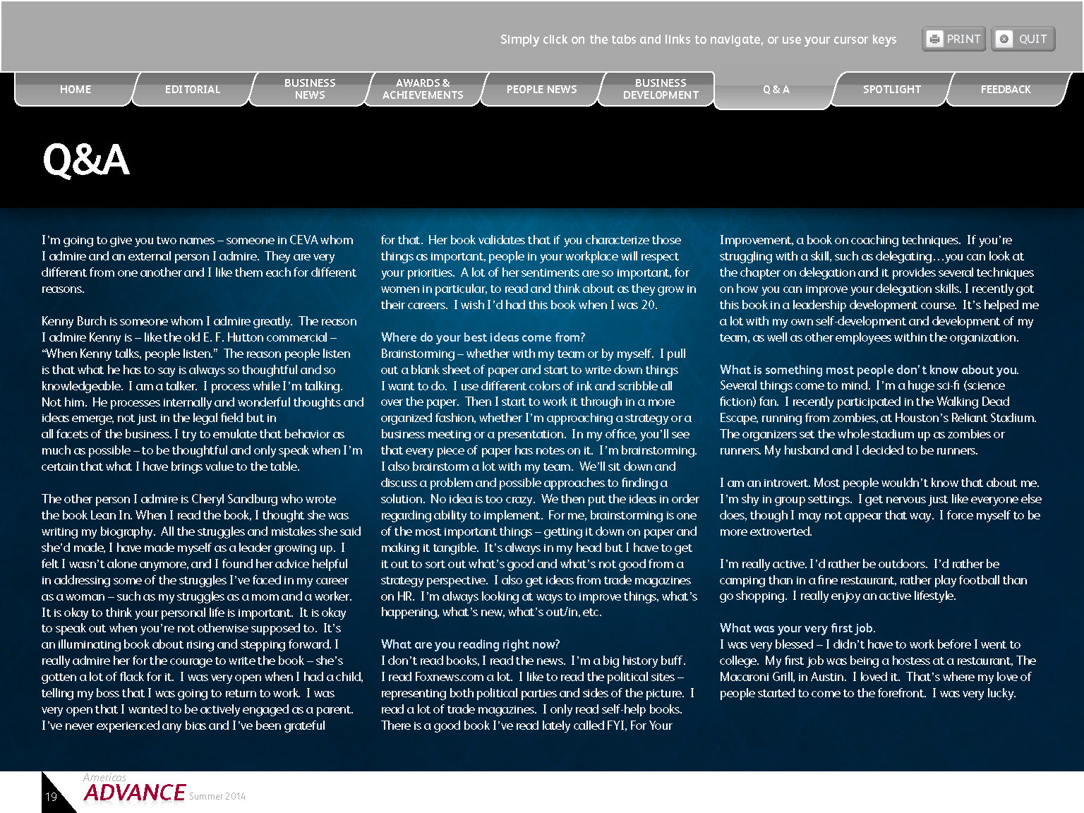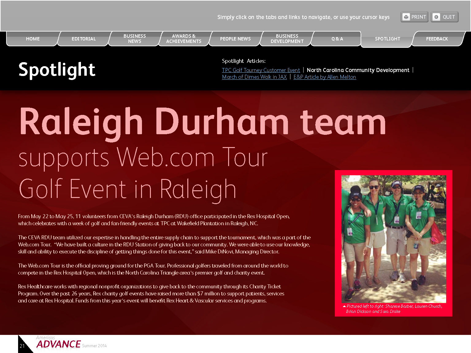 Interactive Quarterly PDF was created for client with live tabs, email links, print buttons, and web links.