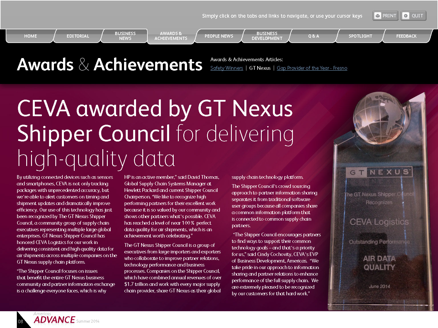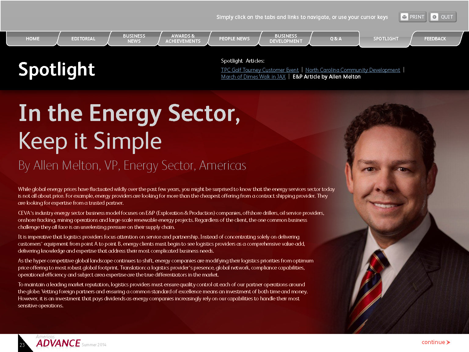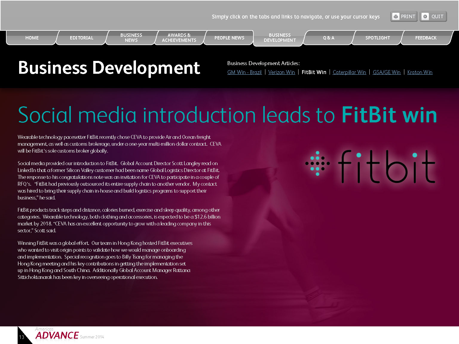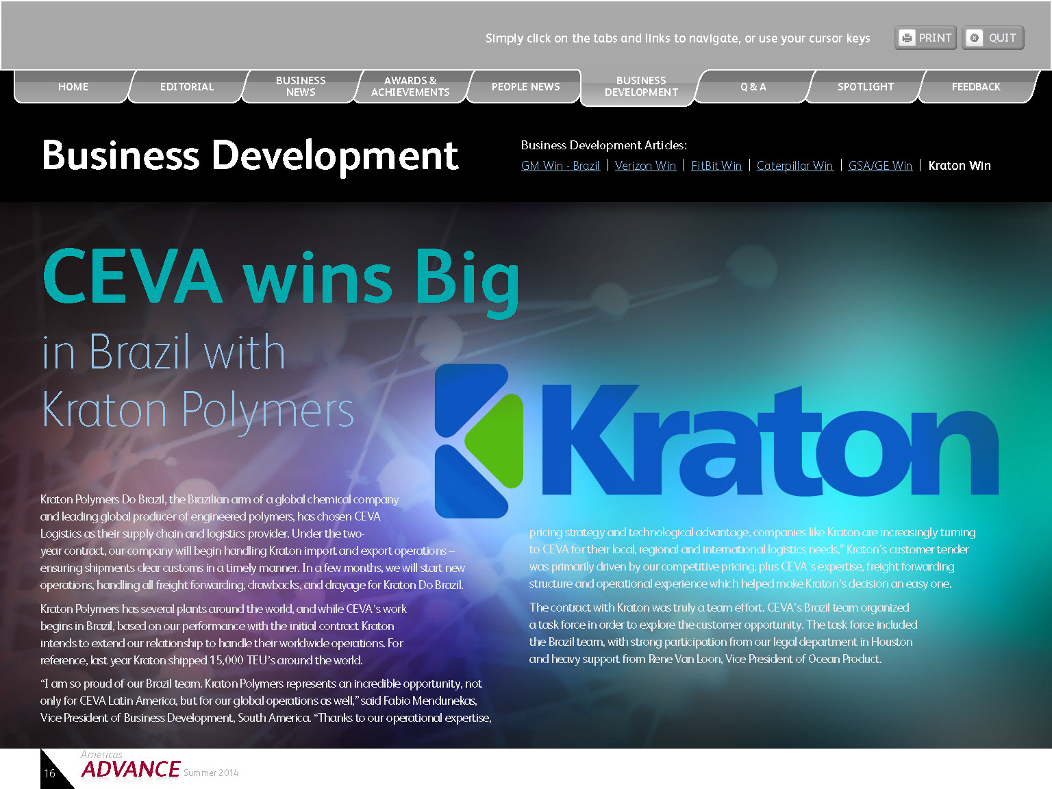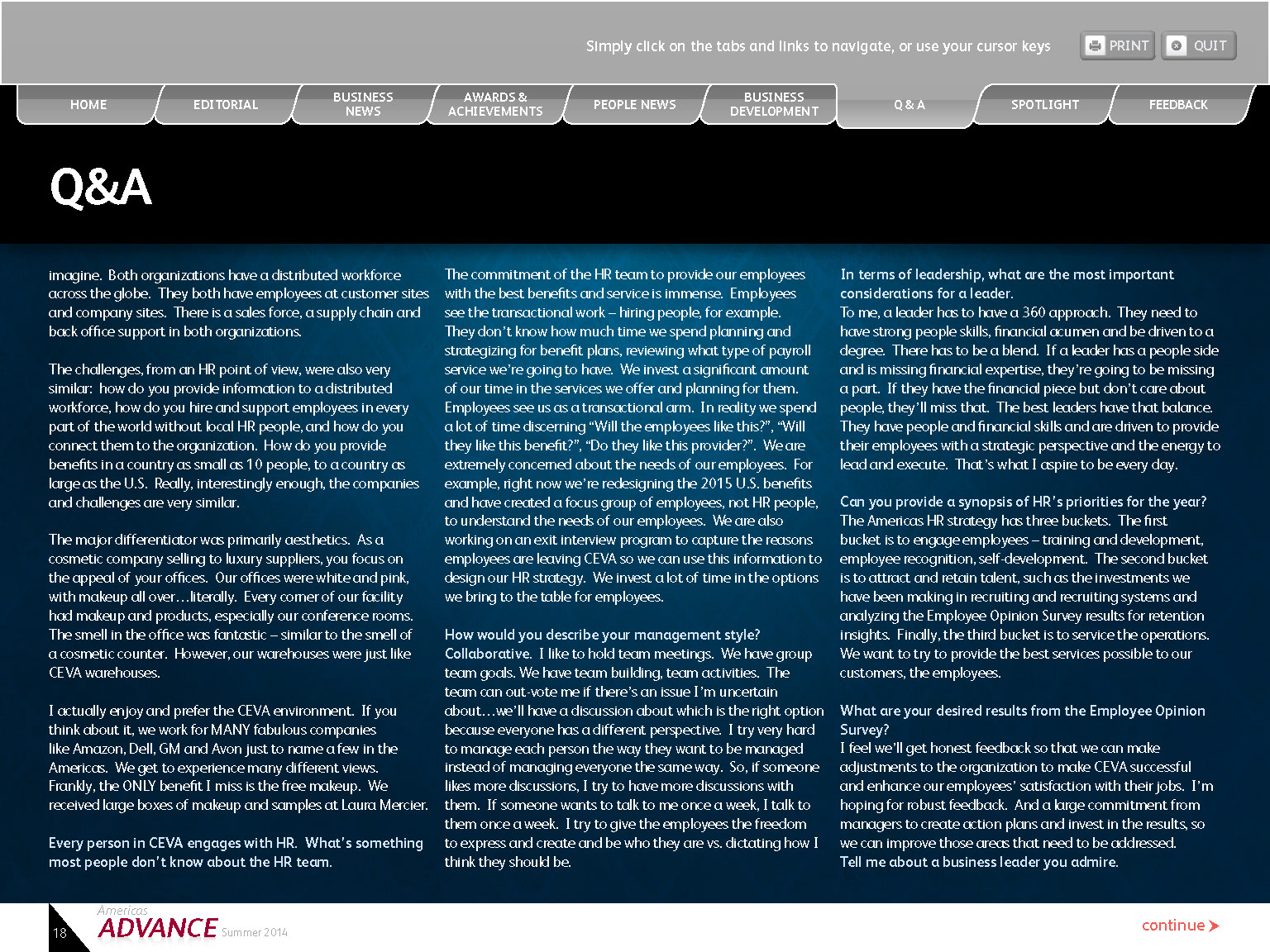 Interactive Quarterly PDF was created for client with live tabs, email links, print buttons, and web links.
